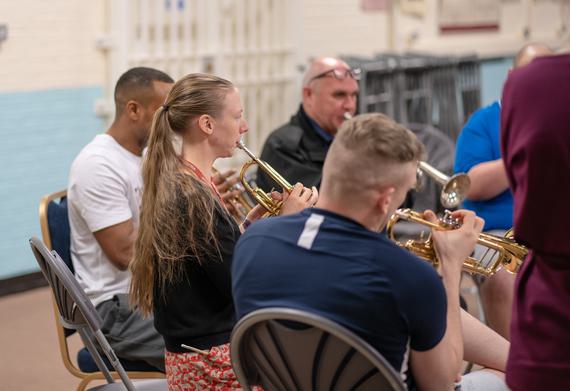 The first project was delivered in spring 2018. 30 residents participated and, through workshopping and improvisation at six creative sessions led by Jason Rowland with Britten Sinfonia musicians, the men composed four original new musical pieces inspired by Gershwin, fusing jazz, reggae, rap, grime and classical music. Prisoners and invited guests were treated to a special concert at the prison. Will Styles, the then Governor of HMP Whitemoor, played in the band for the entire concert.