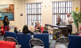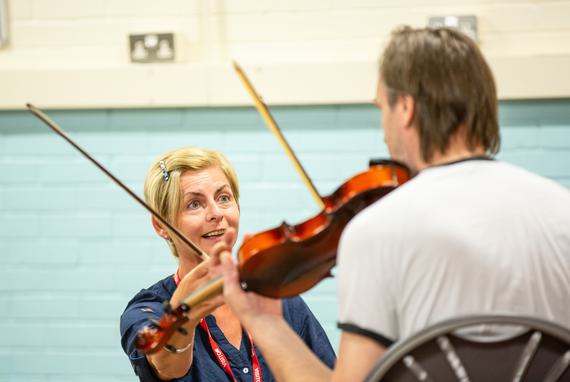 In October 2019, in the visitors’ centre at HMP Whitemoor, nearly 200 people gathered for a one-day festival of art and music for the staff, residents and family members with the musicians of Britten Sinfonia. Family members visited for the whole day, some travelling considerable distances to be there. In the morning there were music workshops, art activities and face painting for the children and families. In the afternoon, a newly formed orchestra, complete with a string section, a brass section, percussion, piano and woodwind, of nearly 50 players - Britten Sinfonia musicians with residents and staff from HMP Whitemoor - performed a concert of new compositions inspired by Beethoven’s 9th Symphony and the work of the minimalist composer Steve Reich.